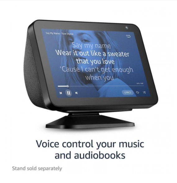 Alexa can show you more – With an 8″ HD screen and stereo sound, Alexa can help manage your day at a glance.