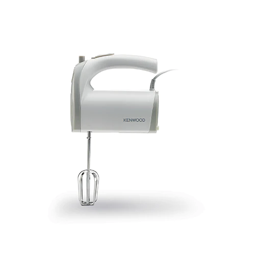 The white HMP20 compact hand mixer comes with five speeds plus turbo, twin beaters and kneaders for folding, mixing, whisking and kneading.