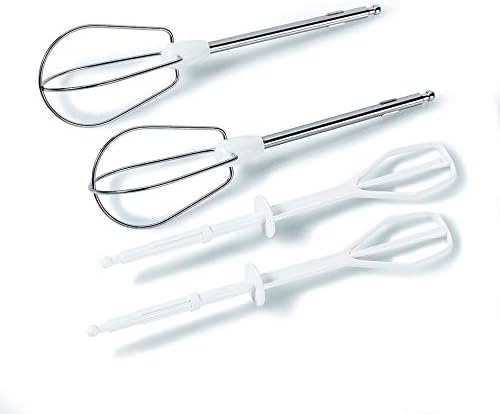 • 2 sets of beaters (plastic and stainless steel) for batters, cakes mixes, whipped egg whites and cream